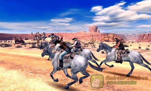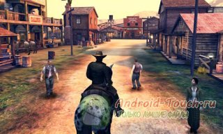 Красный камень, пыльные дороги, деревянные строения, шляпы и куртки – вся эстетика вестерна налицо. Казалось бы, единственным языком игры должен быть американский английский, однако же игра русифицирована. Роскошь имеет свою цену: для полноценной игры придётся установить кэш размером с Большой Каньон – 775 мегабайт. К тому же игре подавай ARMv7, на шестом ядре она не запустится.