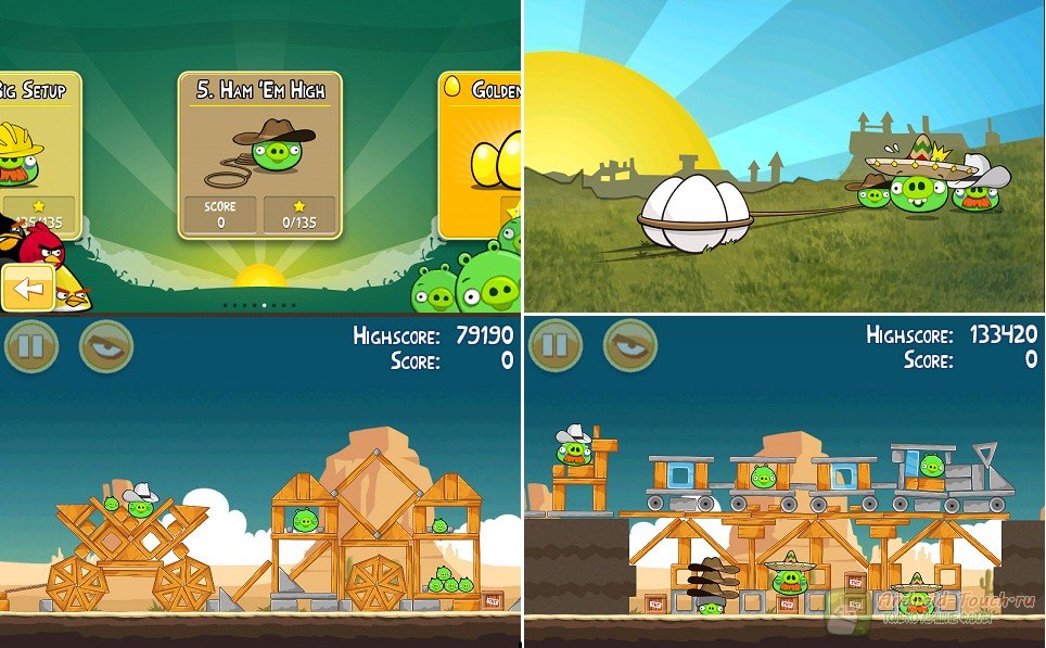 На данный момент количество загрузок превысило полмиллиарда. Каждый день эта игра съедает более полумиллиона человеко-часов. Фирма Rovioпланирует снять даже не один, а несколько фильмов по мотивам этой игры (автор статьи думает, что здесь не обойдётся без Pixar), а раввины-колумнисты уверяют своих читателей, что игра в высшей степени кошерна. Даже при том, что основные уровни Вы уже наверняка прошли вдоль и поперёк и знаете, насколько сильно и под каким углом натягивать рогатку для сноса каждой свиньи, Вам всё равно захочется отведать знакомой игры в новом интерфейсе или открыть для себя тайные уровни с помощью анлокера. Портал Android-touch.ru желает Вам побед над свинством!