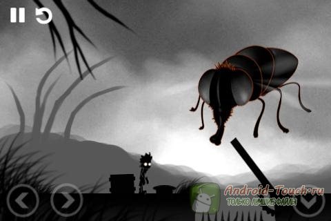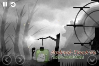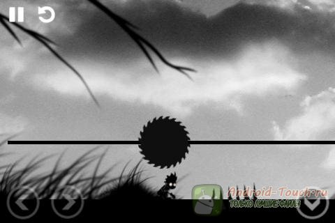 Герой изображён крайне схематично – в сиде силуэта со сверкающими глазами. Так же силуэтно выглядит и весь игровой мир, зловещий, недружелюбный и очень колючий. Избегайте ловушек: для этого надо то согнуться, проползая под катящимся колесом, то не допустить, чтобы на голову свалились подвешенные грузы, то выпустить на свободу огромных летающих тварей, запертых в клетке прямо у Вас на пути...