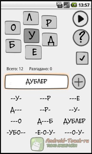 Суть этой игры чем-то напоминает знаменитый Scrabble, он же – «Эрудит». Из случайного набора букв нужно составить слово. Любое слово: если Вам вдруг достались буквы О, Ж, П и А, то не мучайтесь, составляя из них «вечность». Можно использовать и не все буквы из выпавшего набора, однако та, что оказалась в центре, должна быть применена обязательно.