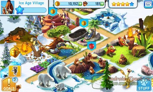 Итак, знаменитая саблезубая белка в своей погоне за жёлудем, как мы знаем, способна спровоцировать самую настоящую катастрофу – что и случилось в реальности нашей игры. Теперь наши старые знакомцы – мамонт Мэнни, мамонтиха Элли, тигр Диего и ленивец Сид – вынуждены строить новый посёлок, в чём мы и будем им помогать. Занятие это, как и следует ожидать, окажется чрезвычайно забавным и будет нести множество сюрпризов. Каждое достижение становится ступенькой к открытию новых видов зданий, к приглашению новых зверей, к появлению собственных видов украшения.