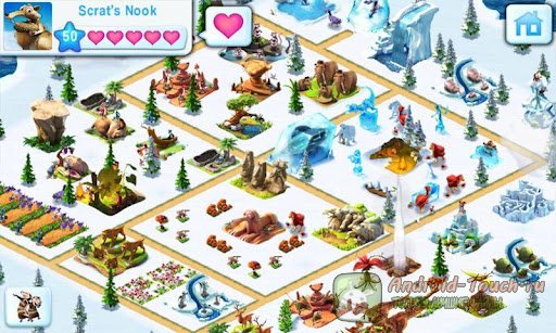 Таким образом, игра Ice Age Village, как и положено современной игре, предлагает Вам гораздо больше, чем в ней есть прямо сейчас. Возможно, именно игроки в Ice Age Village первыми увидят трейлер новой серии «Ледникового периода»! Подсказка: для этого нужно построить в посёлке... кинотеатр. В игре есть продвинутые социальные функции, которые в основном строятся вокруг социальных сетей – гиганта Facebook и собственной сети разработчика – Gameloft.