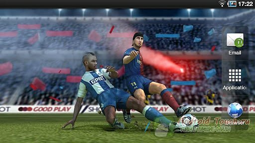 Живые обои Good Point приглашают нас на стадион, ощущение реальности которого усиливается благодаря HD-качеству обоев. Разумеется, этот вариант в первую очередь оценят обладатели планшетов и смартфонов класса «лопата». Установив эти обои на своё устройство, Вы должны будете для первого запуска подтвердить лицензию через Интернет. И – вуаля! – перед Вами трёхмерный футбольный мир. Вы находитесь посреди поля, где как раз вовсю идёт борьба за мяч между двумя игроками. Рассмотреть сцену можно со всех сторон: обои вполне трёхмерные.