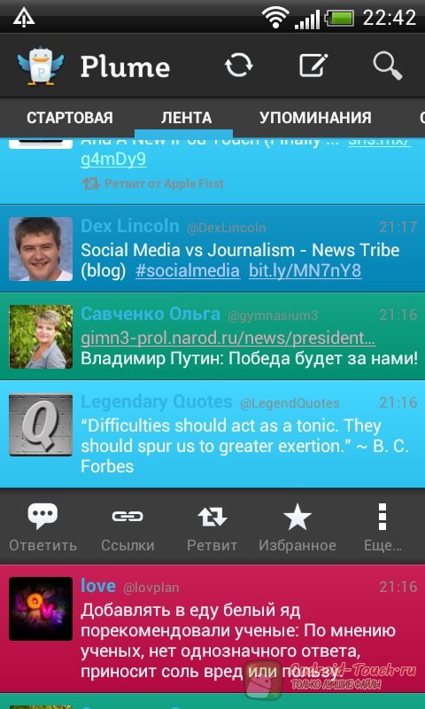 Не факт, что Plume превосходит другие Twitter-клиенты по функциональности, но по красоте интерфейса Plume в первых рядах. А эстетичность – тоже важно.