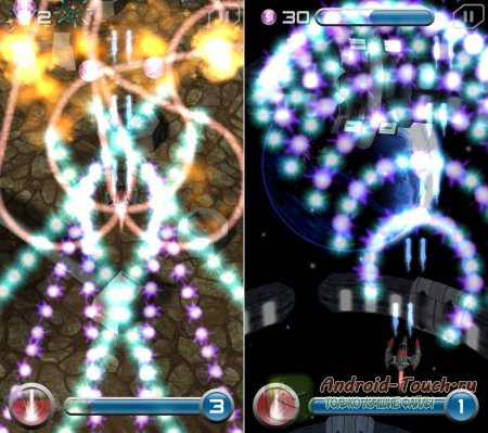 Порой вам придётся применять мультитач. Управлять кораблём здесь приходится с помощью жестов. Простого горизонтального перемещения с помощью акселерометра будет недостаточно: ваш корабль может двигаться и вправо-влево, и вперёд-назад. А параллельно с перемещением вам надо будет и применять специальное оружие по кнопке внизу.