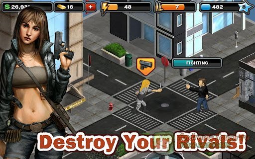 «Есть лишь одно место, где преступление окупается», - так звучит лозунг этой ролевой игры. К самому названию разработчика – Funzio – уже хочется приставить словечко «дон». Что ж, добро пожаловать в преступный город! Как и в других играх такого плана, Вашему герою предстоит подняться в преступной иерархии от простого уличного гопника до главы клана. На пути к вожделенному трону Вам придётся и грабить ботов на улицах, и убивать конкурентов, и осваивать ограбления.