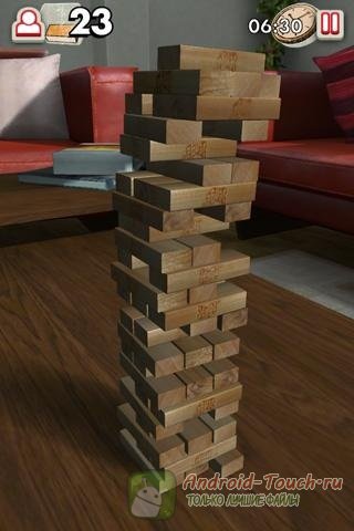 Суть игры вкратце такая. Изначально мы имеем 54 прямоугольных строительных блока, каждый с прямоугольным сечением и длиной втрое больше ширины. Из них мы до начала игры строим восемнадцатиэтажную башню, каждый «этаж» укладывая блоки перпендикулярно предыдущему. А потом начинается феерия. Каждый ход в этой игре, как Вы наверняка догадываетесь, сводится к добавлению одного блока на вершину башни. Однако это не главное. Откуда брать эти дополнительные блоки, если в комплекте их нет? Правильно – из уже построенных этажей. И делать это нужно так, чтобы башня не развалилась.