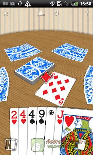 Если человеку бывает сложно освоиться с правилами, то искусственный интеллект в этой программе весьма силён и играет уверенно. Ещё одно достоинство приложения – отличная, детальная графика. Карты выглядят очень красиво, трёхмерный стол выглядит реалистично. Впрочем, нескромный размер приложения – 7 мегабайт – предполагает и графическую мощь.