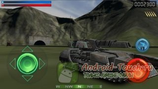 Прицеливание, управление огнём, стрельба – управление всем этим происходит через кнопки в нижней части экрана. Элементы управления отчётливые, промахнуться по ним трудно. Русификация интерфейса здесь отсутствует. Впрочем, по большому счёту, переводить нечего, интерфейс здесь чисто графический. Противники появляются на горизонте, задача просто: поймать их в прицел и уничтожить. Ландшафтам и вражеским машинам порой не хватает детализации, хотя уровень графики в целом вполне приемлемый для «лёгкой» игрушки.