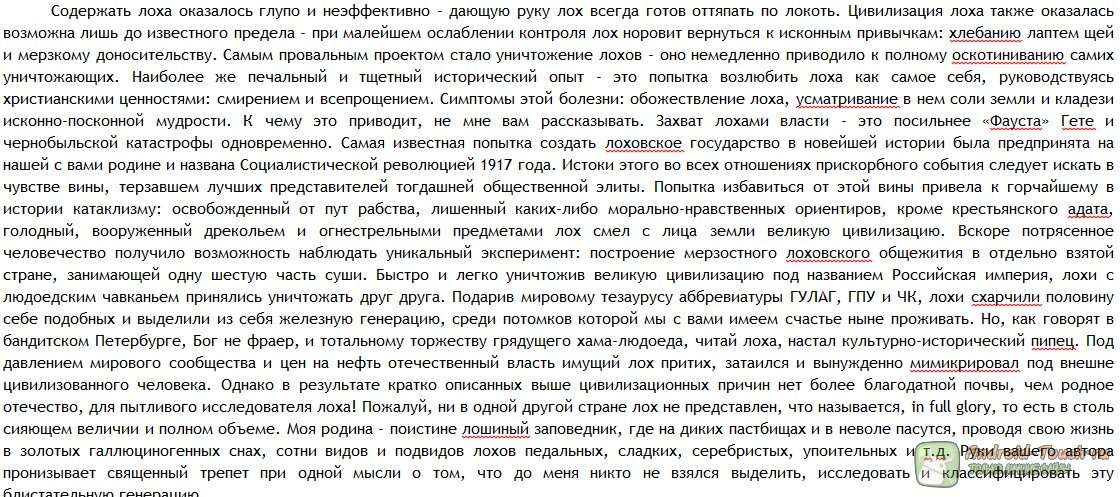Пожалуй, еретическую вещь сейчас скажу, но я действительно так думаю: прочтение Ксюшиной «Энциклопедии лоха» может помочь читателю в личностном развитии гораздо сильнее, чем различные «Турбо-суслики» и «Трансерфинги». Действительно, она гораздо ярче описывает масштабы и последствия «лоховства», заставляя читателя посмотреть на себя со стороны (а раз речь о 99%, то подсчитайте, дорогой читатель, сколько раз Вы узнаете в книге себя?) Именно это острое осознание может подтолкнуть Вас к началу «окончательного решения лоховского вопроса» в себе самом. При этом методы преодоления в себе лоха остаются за рамками книги. Их Собчак не предлагает. Воспринимайте это как вызов.