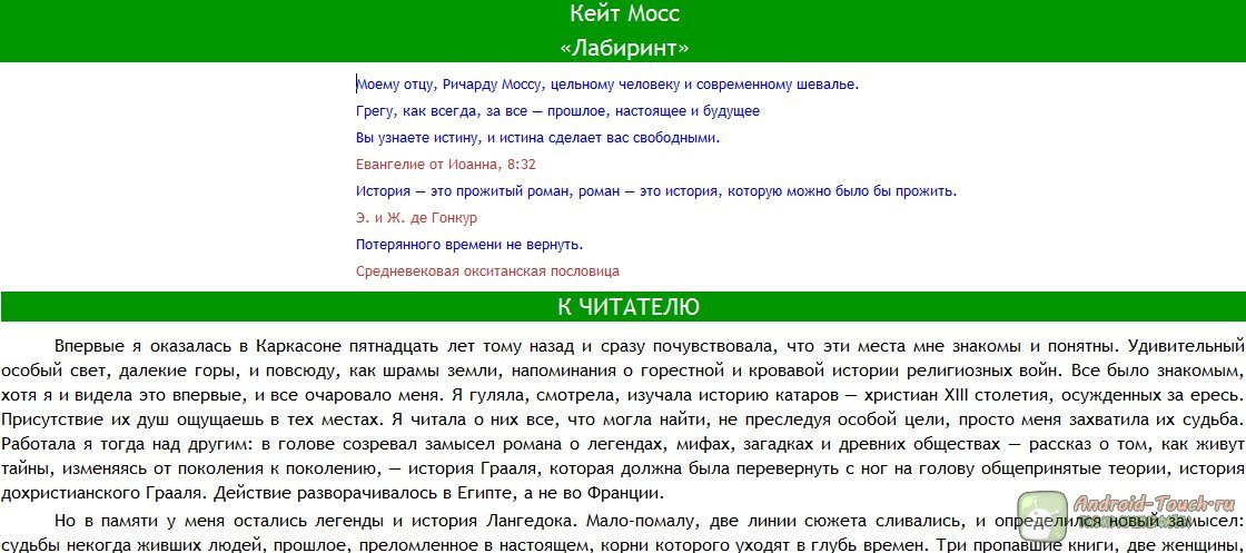 Книга Лабиринт от Кейт Мосс в формате fb2 а так же ePub формате для смартфонов: Samsung Galaxy S II I9100, HTC EVO 3D + Incredible S + Desire HD, Motorola Atrix 4G + Milestone 2 + XT701, LG Optimus 3D P920, HTC Sensation, Sony Ericsson Xperia Arc S, Google Nexus S, Acer Liquid, Garmin-Asus A10, Huawei Ideos U8150 и других моделей.