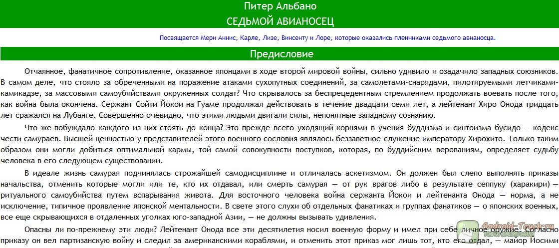 Книга Седьмой авианосец от Питера Альбано в формате fb2 а так же ePub формате для смартфонов: Samsung Galaxy S II I9100, HTC EVO 3D + Incredible S + Desire HD, Motorola Atrix 4G + Milestone 2 + XT701, LG Optimus 3D P920, HTC Sensation, Sony Ericsson Xperia Arc S, Google Nexus S, Acer Liquid, Garmin-Asus A10, Huawei Ideos U8150 и других моделей.