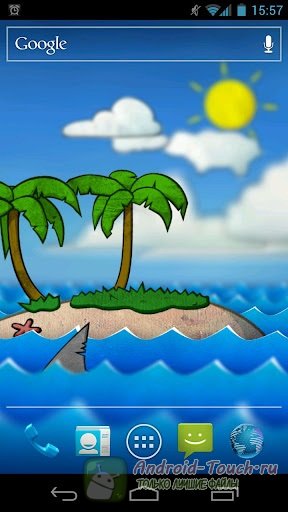 Именно такие ощущения вызывают живые обои «Бумажный океан». Как детский рисунок, оживающий на наших глазах. Острые гребешки волн, похожие на зубцы пилы. Остров с двумя пальмами и травой, маленький и притягательный: нарисовать бы себе такой где-нибудь в Карибском море и поселиться. А на берегу раскинулась морская звезда, примеру которой хочется последовать. Иногда по морю проплывает акула – но от неё виден только треугольный плавник, рассекающий волны.