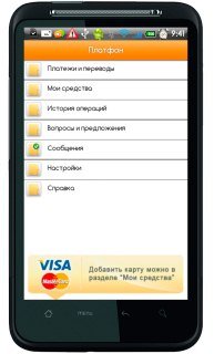 Чтобы оплатить услуги какого-то оператора или провайдера, квитанцию из Интернет-магазина или счёт, достаточно зайти в раздел «Платежи и переводы» и выбрать из списка нужную фирму, потом ввести данные (допустим, если это телефон – Ваш номер и сумму пополнения) и подтвердить платёж. Кроме этого, ПЛАТфон позволяет совершать денежные переводы, как в обычном банке, обмениваться сообщениями с другими пользователями ПЛАТфон, а также упрощать себе жизнь многими другими способами.