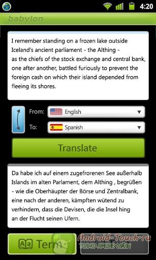 Приложение Babylon Translator (онлайн переводчик текстов) предположительно подойдет для смартфонов: Samsung Galaxy S II I9100, HTC EVO 3D + Incredible S + Desire HD, Motorola Atrix 4G + Milestone 2 + XT701, LG Optimus 3D P920, HTC Sensation, Sony Ericsson Xperia Arc S, Google Nexus S, Acer Liquid, Garmin-Asus A10, Huawei Ideos U8150 (и других моделей).