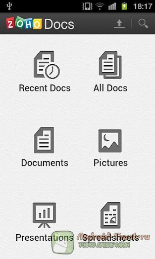 Как водится в мобильных и облачных офисных системах, поддерживаются в основном документы типа Word, Exce-совместимые таблицы, презентации типа Power Point, а также документы PDF. Называется всё это, понятно, по-другому – Zoho Writer, Sheet, Show & Docs. Однако суть остаётся прежней. Среди прочих плюшек – поиск, общий доступ к документам, фотохостинг и встроенная функция обратной связи. Благодаря облачному решению размер приложения (по сути, клиентской части) неправдоподобно мал: всего 552 килобайта.