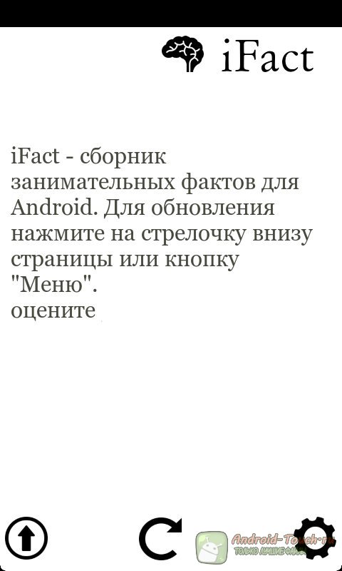 Подход автора к закрытию программы несколько необычен. Так, кнопка «меню» здесь подразумевает не запуск меню настроек, а обновление отображаемой информации. Чтобы закрыть приложение, нужно воспользоваться кнопкой «назад». Есть возможность подгрузить базу фактов для чтения в автономном режиме.