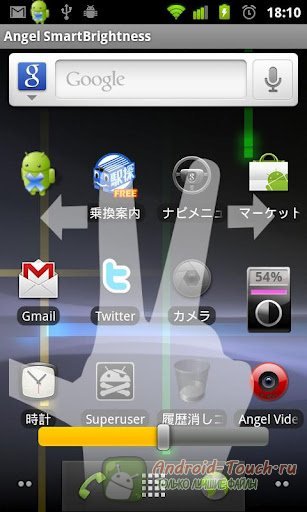Установив его, позаботьтесь о том, чтобы в системных настройках не была активна опция «Автоматическая подстройка яркости» - в активном виде она делает приложение бесполезным. А вот позволив ручную подстройку, мы можем насладиться простотой и эффективностью данной программы. Знакомый нам всем жест – одновременное движение двух пальцев по экрану, мультитач – на рабочем столе при включенном Angel Smart Brightness приобретает новый смысл: теперь он будет означать увеличение яркости. Его антипод, двойной жест «щипок», соответственно, позволит нам быстро уменьшить яркость. Быстро, просто и знакомо.