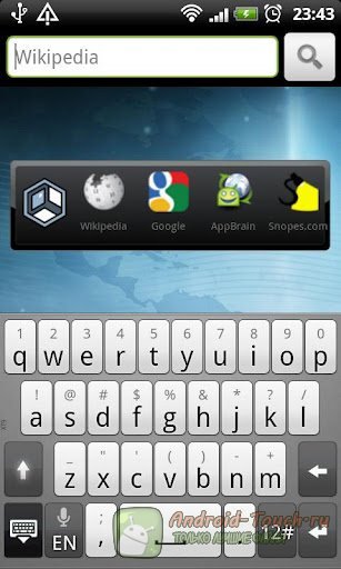 Простой и небольшой (менее мегабайта) виджет позволит Вам избежать нудного поиска среди результатов со всего Интернета. Кроме веб-ресурсов, поддерживается также поиск по торрентам. Поддерживаются также темы оформления – на данный момент доступно оформление в обычном Google-стиле и в эстетике HTC Sense. На данный момент Askeroid предлагает Вам порядка трёхсот ресурсов для осуществления адресного поиска, и их число всё растёт. Отличный виджет, позволяющий серьёзно сэкономить усилия по поиску в Интернете.